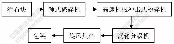 目前,滑石的粉碎加工主要采用干法工藝,濕法粉碎雖有研究,但工業上很少使用。