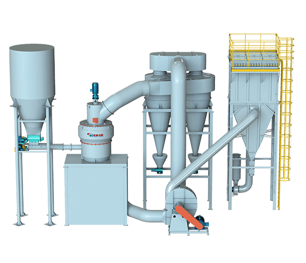 閉路系統(tǒng):物料通過給料機定量進入進料管道,與系統(tǒng)進風(fēng)混合均勻后,由下端入料口進入分級機,符合粒徑要求的細顆粒隨氣流進入旋風(fēng)收集器,經(jīng)收集細粉后的氣流再次回到分級機,形成閉路,循環(huán)的氣流一部分進入余風(fēng)脈沖,經(jīng)除塵后排出,粗顆粒夾帶部分細顆粒沿筒壁下降至二次風(fēng)處,經(jīng)二次風(fēng)的淘洗作用,使粗細顆粒分離,細顆粒上升至分級區(qū)進行二次分級,粗顆粒下降至下料口排出。