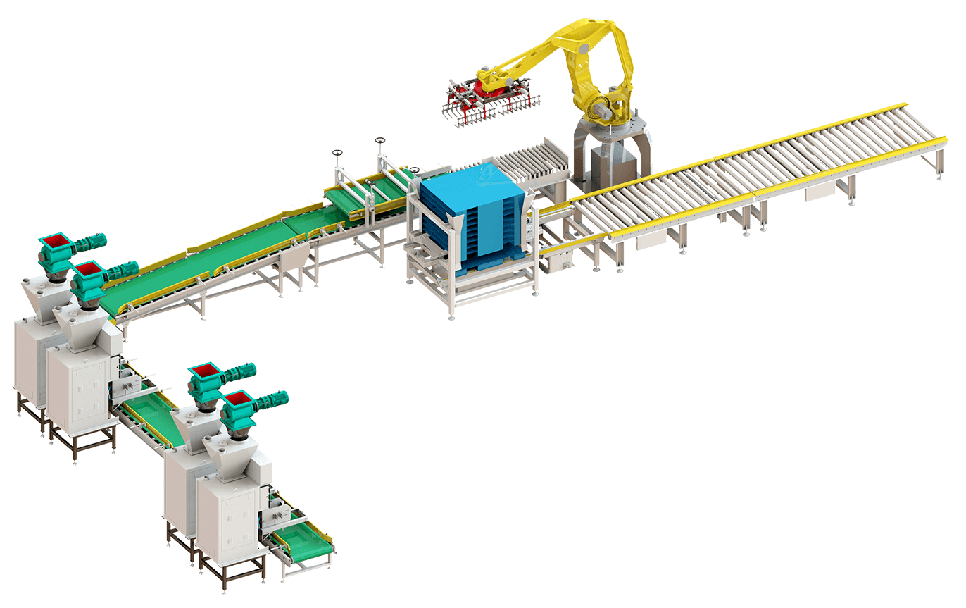 采用機(jī)器人自動(dòng)碼垛的生產(chǎn)線,通過計(jì)算機(jī)程序控制,能夠?qū)崿F(xiàn)自動(dòng)包裝、落袋、輸送、整形、調(diào)整、碼垛、壓垛等功能,同時(shí)可根據(jù)客戶產(chǎn)品及工藝要求個(gè)性化設(shè)計(jì)。生產(chǎn)過程勞動(dòng)力少、節(jié)省空間、運(yùn)作靈活精準(zhǔn)、快速高效。廣泛應(yīng)用于電力、冶金、水泥、化工、非金屬礦等行業(yè)的制粉儲(chǔ)運(yùn)中,如:滑石粉、重晶石、方解石、高嶺土、鈦白粉、石灰石、膨潤土、鐵礦石等。